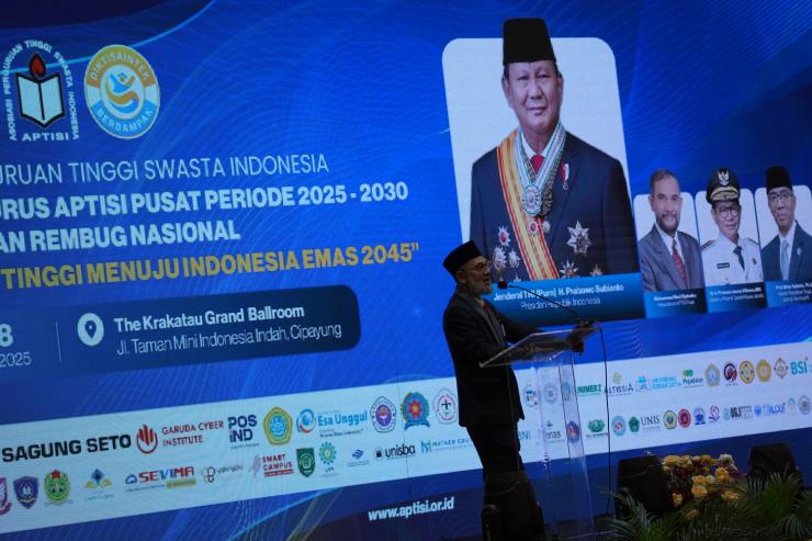 Jakarta, 17 November 2025 - Asosiasi Perguruan Tinggi Swasta Indonesia (APTISI) menggelar Rembug Nasional sekaligus Pelantikan Pengurus APTISI Pusat Periode 2025–2030 di The Krakatau Grand Ballroom, Taman Mini Indonesia Indah, Jakarta. Acara yang mengangkat tema “Arah Pendidikan Tinggi Menuju Indonesia Emas 2045” ini dihadiri lebih dari 1.500 peserta yang terdiri atas pimpinan Perguruan Tinggi Swasta (PTS), perwakilan APTISI wilayah, akademisi, serta tamu dari berbagai lembaga pemerintah dan industri.